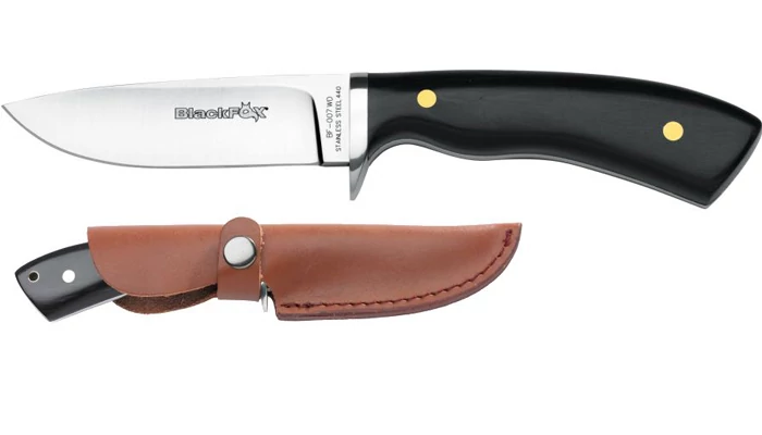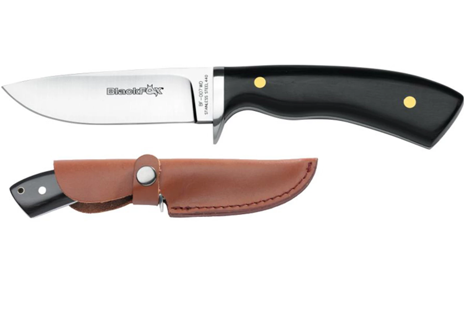 A Black Fox Hunting Knife egy erős és megbízható társ mindenféle szabadidős, vadász tevékenységhez. Az éles 440 rozsdamentes acél penge, a gyönyörű fa markolat és a szálcsiszolt kézvédő teszik a kést praktikus eszközzé. Az ergonomikus, markolat kényelmes és biztonságos fogást biztosít, így fáradhatatlanul végezhetjük vele a munkát. A késhez egy minőségi, barna bőrtok is tartozik.