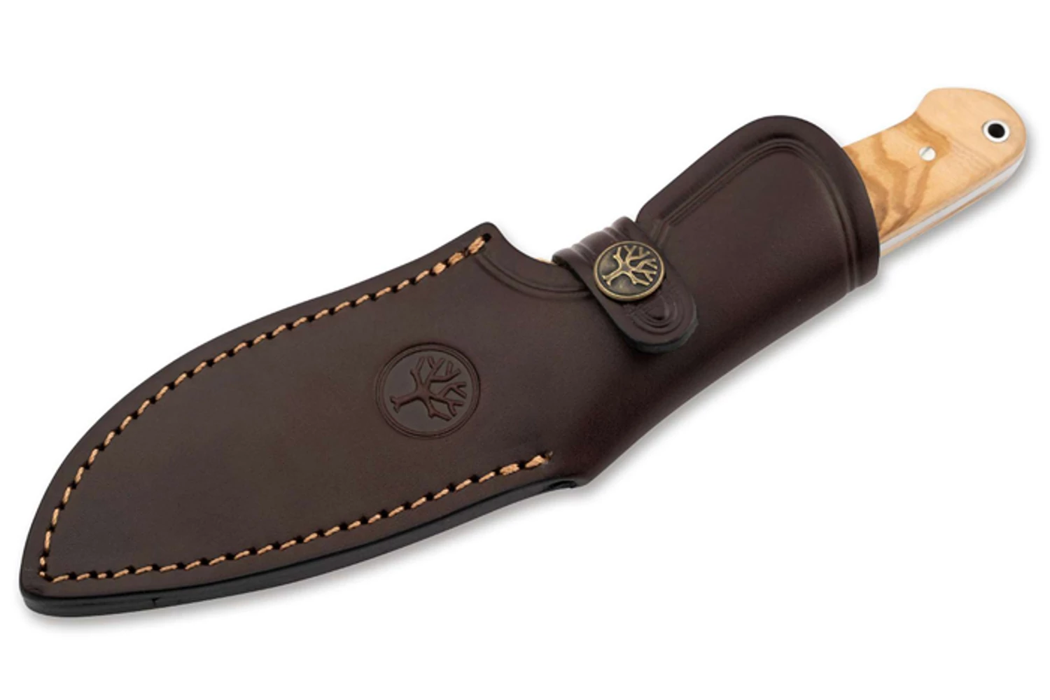 A markolat anyaga olajfa egyedi erezettel. Tapadós hatása miatt nedves körülmények között is biztosan a kezünkben marad a kés.