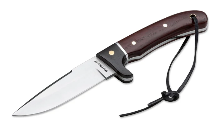 Gyönyörű vadászkés, mely magán hordozza a stílus összes fő ismertető jelét. Mondhatjuk rá, hogy halhatatlan klasszikus. A hamis éllel ellátott, kellően hasas, rozsdamentes 440A acél penge, a gyönyörű mintázatú rózsafa és paliszander markolat, a tekintélyes ujjvédő mind-mind a stílus alap ismertetőjele. A kés full tang kivitel, tehát bármennyire szép is, nem kell félteni a keményebb használattól. Ízléses bőrtok ját hozzá.