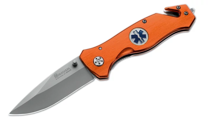 A Böker Magnum Medic egy méltán népszerű mentőkés a Böker Magnum szériából. A késen kívül üvegtörő és övvágó funkcióval is ellátták. A bevonattal ellátott penge anyaga 440 rozsdamentes acélból készült. A narancs színű eloxált alumínium markolatot a mentősök fehér-kék logója díszíti. Ergonomikus kialakításának köszönhetően használata rendkívül kényelmes és hatékony. A klipsznek köszönhetően könnyedén magunkkal vihetjük, hogy mindig kéznél legyen.
