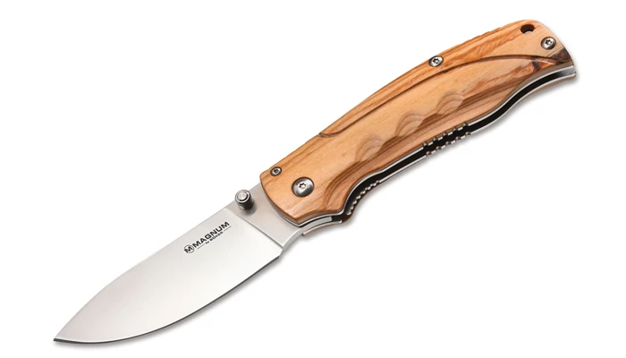 A Böker Magnum Pakka Hunter egy impozáns méretű zsebkés kifejezetten outdoor és vadász felhasználásra. Robosztus, részletgazdag felépítése kategóriája egyik legjobbjává emeli ezt a modellt. A rozsdamentes 440B acél penge kellően hasas, alkalmassá téve a zsebkést a profi metszésekre, vagy akár nyúzási feladatokra is. A markolat gyönyörű mintázatú Pakkafa. Itt minden kis vonal gondosan lett megtervezve a kényelmes és stabil fogás érdekében. Egy ilyen zsebkésről nem hiányozhat a klipsz és a zsinórfurat sem.