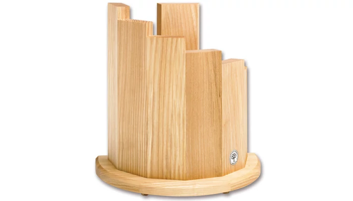 A félkörívben elhelyezett fablokkok mindegyike erős mágnessel ellátott. és egy blokk külön középen található. Egyszerre hét kés tárolható rajta. A kések könnyedén hozzáférhetőek, ráadásul rögtön látjuk milyen késhez nyúlunk, nem kell random kihúzogatni a késeket a tartóból. A talp puha csúszásmentes korongokkal van felszerelve.