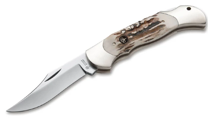 A markolat anyaga szarvasagancs mindkét végén nikkel-ezüst baknikkal. Kényelmes és stabil fogást biztosít használat közben. A biztonságról süllyesztett hátsózár (backlock) gondoskodik. A véletlen becsukódás teljesen kizárt. Zsebklipsz nem található rajta.