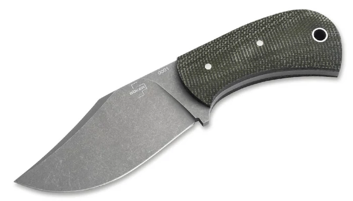 A zömök clip point penge nagy teherbírású D2 szerszámacélból készült kőmosott bevonattal. Full tang kialakítású, tehát az acél végighalad az egész késen. A markolatpanelek anyaga canvas micarta.