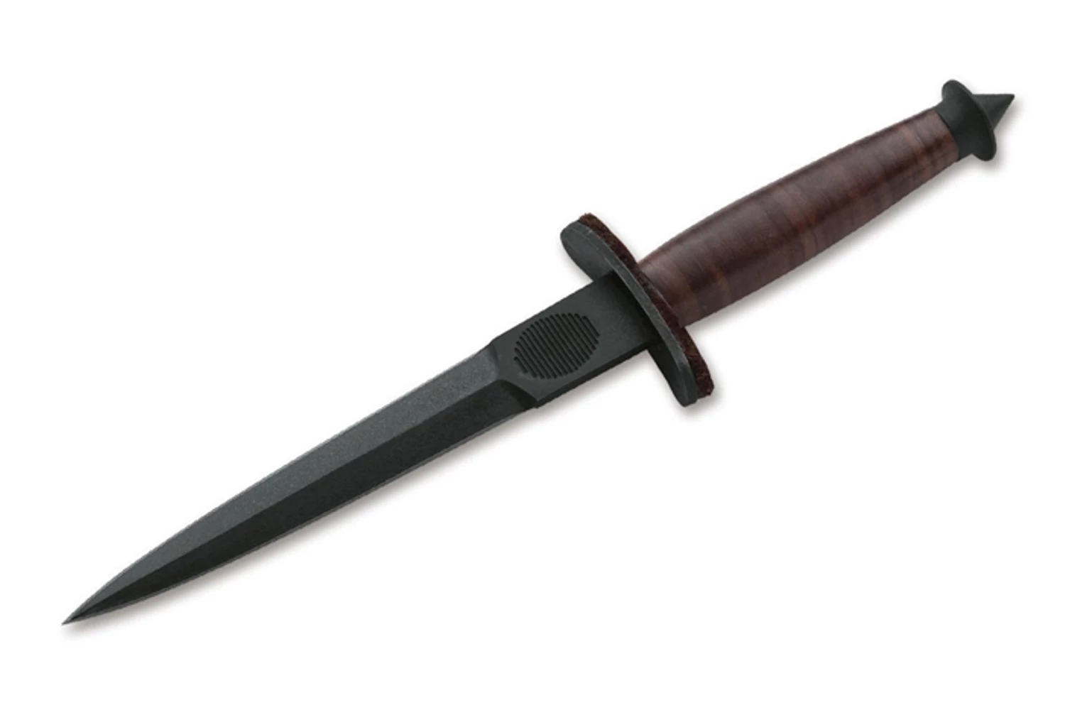 A lándzsahegy penge csillogásmentes fekete bevonatos Sk-85 szénacélból készült, mindkét oldalon élezve. A markolat korhűen rétegelt, ragasztott bőrkorongokból készült. A végén hegyes kalapáccsal. A keresztvas alatt vékony bőrlap van, ami elnyeli a kézre érkező sérüléseket. Nemcsak klasszikus bőrtok jár hozzá, de az eredeti egység felvarrójának korhű másolata is. Valamint a csomag tartalmazza még az Ördögök hivatalos matricáját, ami demoralizáló céllal ragasztottak ellenséges területeken ki.