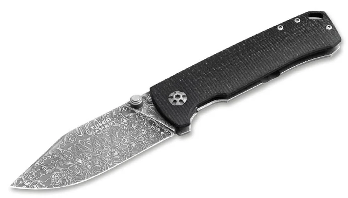 A penge ebből a legendás harckocsiból készült! A damaszkacélt Chad Nichols kovácsolta a Böker számára. Mintázata és technológiája is teljesen egyedi. Mozaikdamaszk révén a különböző acélokat nem rétegekben építik egymásra, hanem egy nagyon körülményes és bonyolult technikával készítik.
