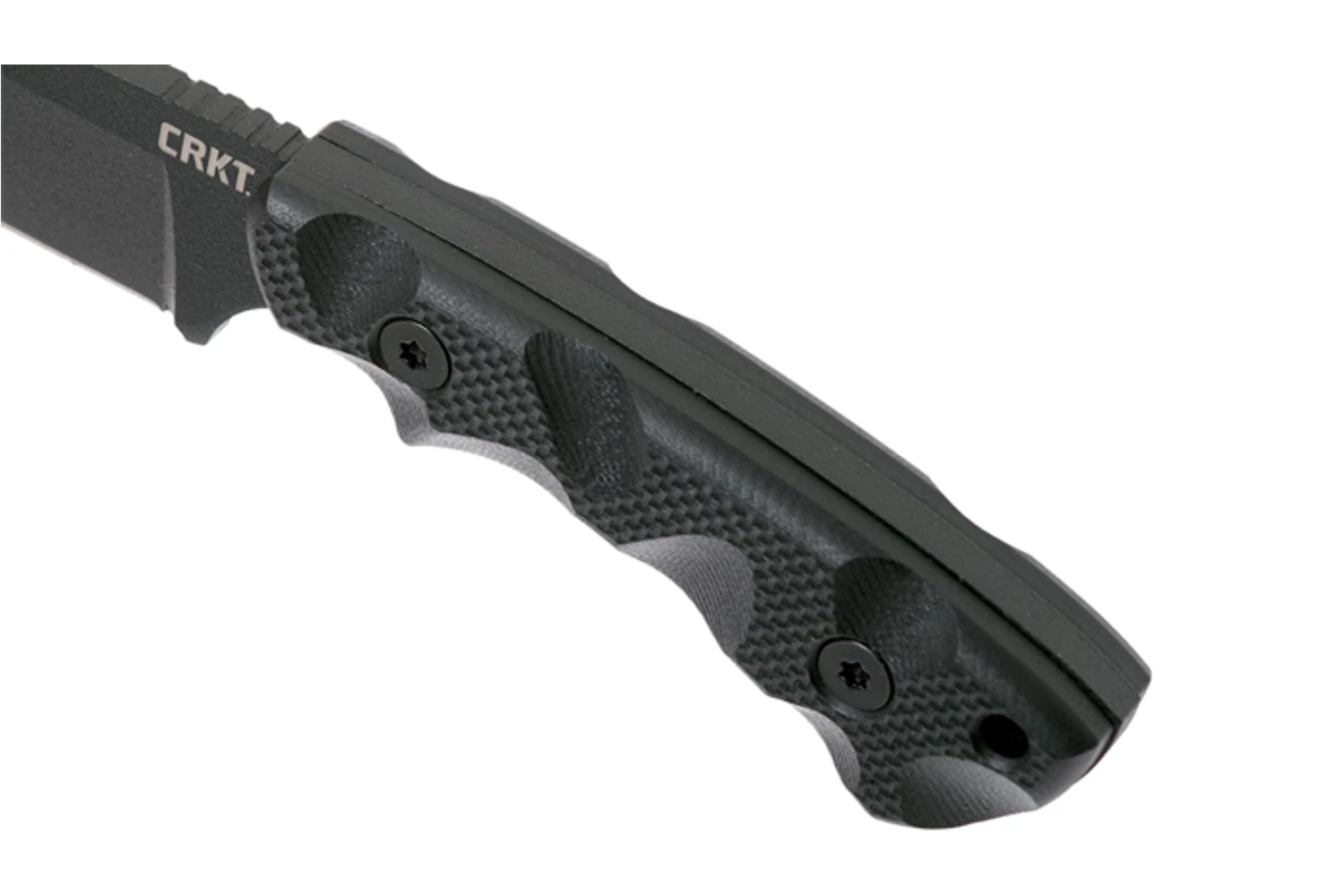 A drop point penge fekete, csillogásmentesített bevonattal ellátott SK5 szénacélból készült. A bevonat védi az acélt a korróziótól. Az öblös él remek vágóképességgel ruházza fel a kést. A markolat ergonómiai kialakítású, textúrázott G10. Az ujjosztásoknak köszönhetően bombabiztosan tartható. Praktikus üvegszálas nylon tok jár hozzá adapterekkel.