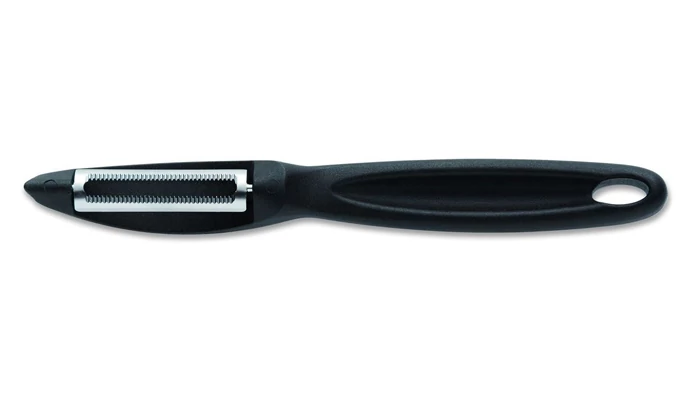 Dick Hámozó fogazott pengével feketeA Dick hámozóval a zöldségek és gyümölcsök könnyedén hámozhatóak. Nagyon éles rozsdamentes acél pengével rendelkezik, mely éveken át élesek maradnak.