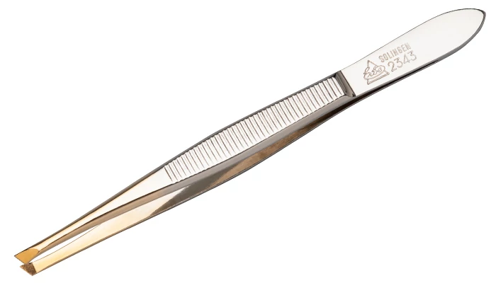 A szemöldökcsipesz egy klasszikus módszere a szemöldök formájának a kialakításra és modellezésére. A legmagasabb minőségű anyagokból készült Erbe Solingen Perfect márkájú Ferde szemöldökcsipesz a minőség záloga. A csipesz speciálisan edzett acélból készül, amely hosszú élettartamot biztosít a termék minőségének romlása nélkül. A csipesz hegyei szorosan illeszkednek egymáshoz, ezáltal biztonságosan meg lehet fogni és óvatosan ki lehet húzni még a bolyhos szőrszálakat is.