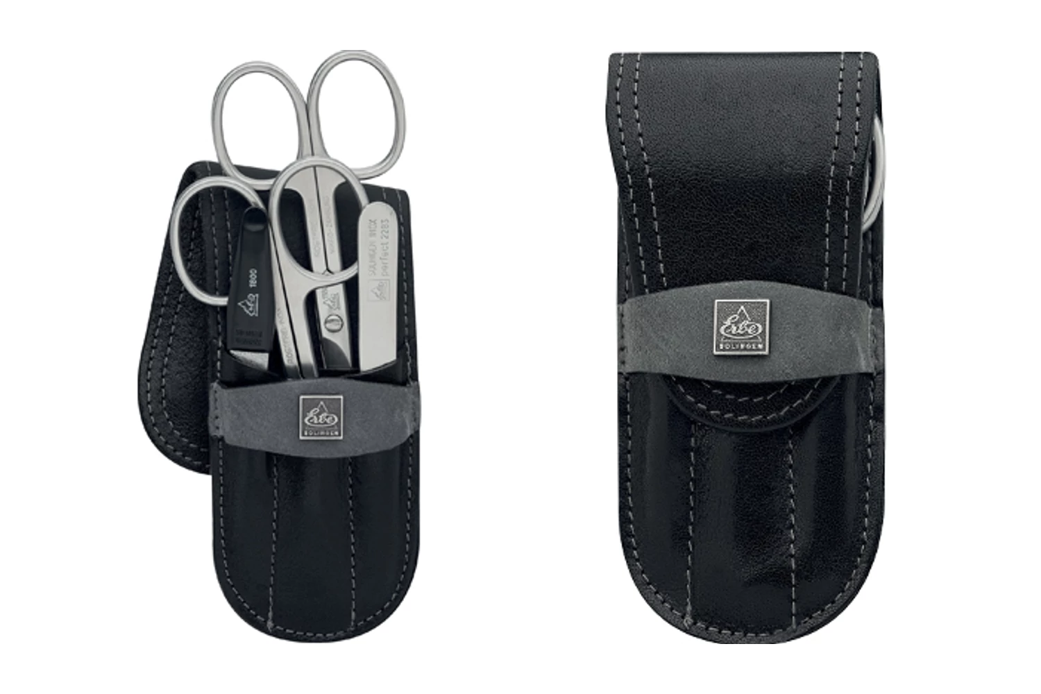 Az Erbe Solingen Stone 4 db-os manikűrkészletek Valódi Bőrből és harmonikusan összehangolt bársonnyal béleltek. Kiváló minőségű ERBE Solingen Manikűr szerszámokkal szerelve. A tok praktikus zárással van ellátva. A készlet tartalmazza az utazás közbeni manikűr/pedikűr/kozmetika alapfelszereltségét, Ajándéknak is kiváló választásválasztás. Minden gyártási folyamat során a termékeket többször tesztelik és ellenőrzik, így egyetlen termék sem hagyhatja el a gyárat, amelyek nem felelnek meg a legmagasabb elvárásoknak.