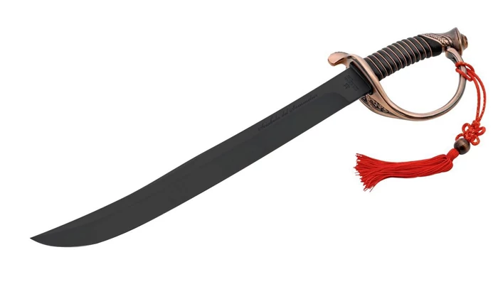 A mesterien kimunkált penge T5MoV rozsdamentes acélból készült gyönyörű fekete bevonattal. Vágóéllel biztonsági okokból nem rendelkezik a díszes szablya. A markolat részletgazdagsága ámulatba ejtő.