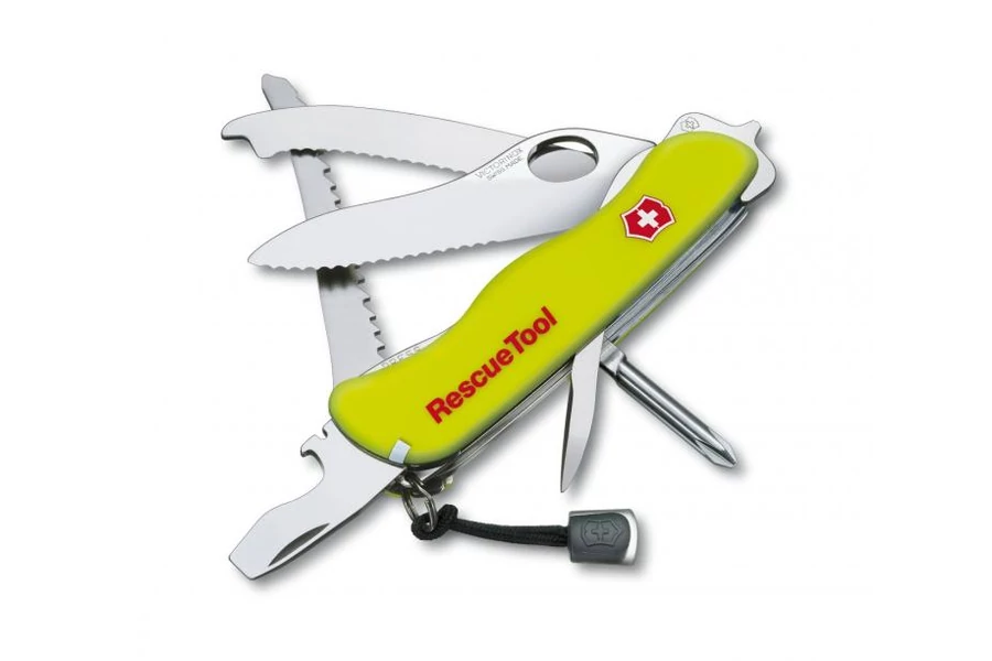 Rescuetool 14 funkciós zsebkés, egy kézzel nyitható rögzíthető nagy pengével.