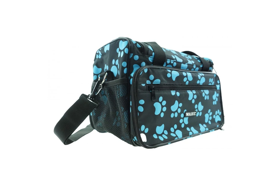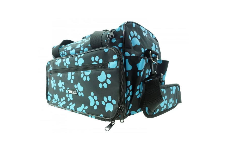 Kutyakozmetikai táska fekete és korallpiros színű.