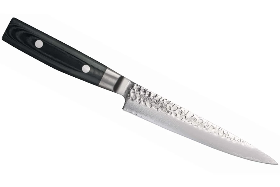 | Yaxell Zen Japán Konyhakés 15 cm-es damaszk pengével. Ez a modell az egyik legsokoldalúbb darabja a sorozatnak. Alkalmas zöldségek, gyümölcsök hámozására és feldolgozására. Kolbászok, sajtok, kisebb húsok szeletelésére, darabolására. A legjobb teszt díj, Svédország. (2016, 2017) A penge a híres japán San Mai technológiával készül. Ez azt jelenti, hogy a középső réteg – a mag – keményebb, merevebb és éltartóbb, a jobb vágási teljesítmény érdekében. | |