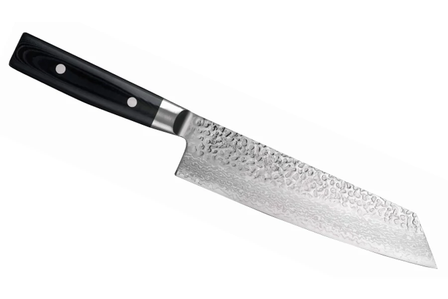 Yaxell Zen Japán Kiritsuke Szakácskés 20 cm-es damaszk pengével. A Kiritsuke szó szerinti fordításban azt jelenti: felmetszett. Ez a penge típus asszimetrikus és univerzálisnak tekinthető a japán konyhában és széleskörben használják, például sashimi előkészítésére vagy zöldségek, gyümölcsök finom aprítására. A legjobb teszt díj, Svédország. (2016, 2017) A penge a híres japán San Mai technológiával készül. Ez azt jelenti, hogy a középső réteg – a mag – keményebb, merevebb és éltartóbb, a jobb vágási teljesítmény érdekében. |