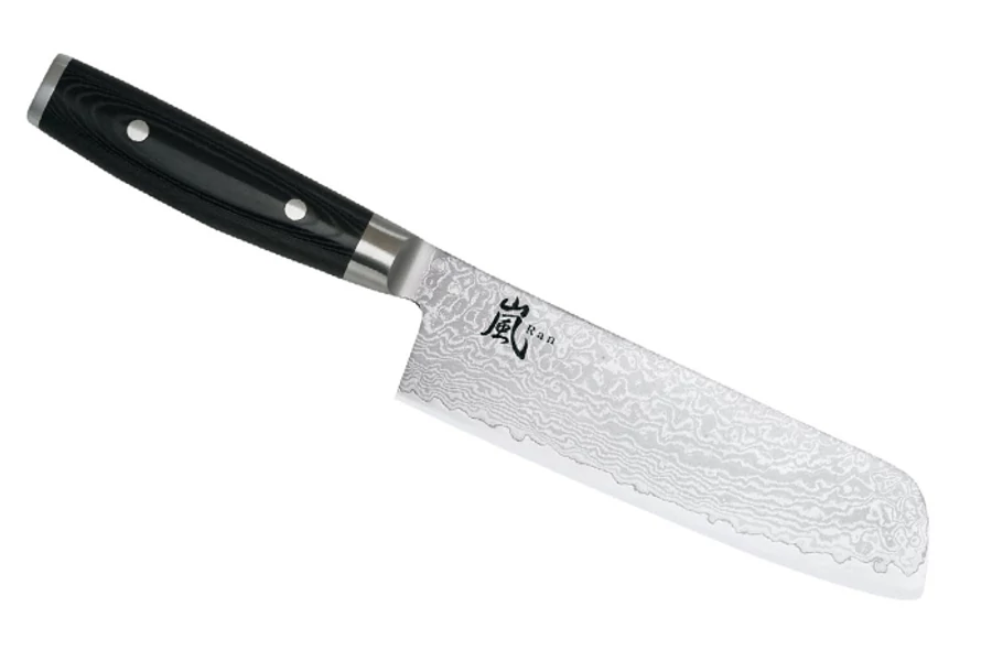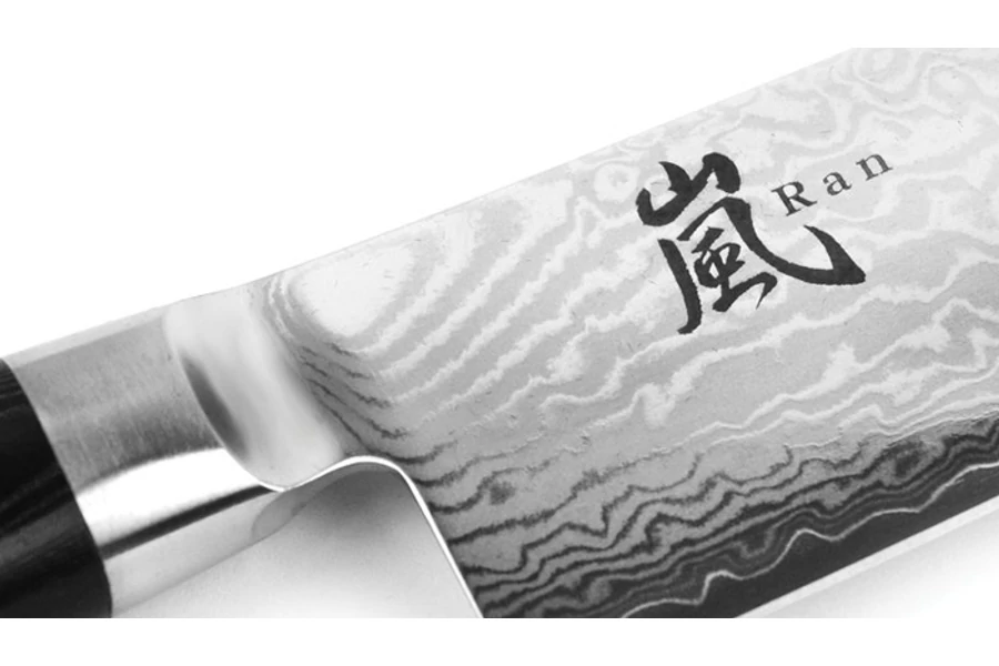 | Yaxell Ran Japán Nakiri Szakácskés 18 cm-es damaszk pengével. Speciális formavilággal rendelkező japán szeletelőkés. Kiválóan alkalmas a zöldségek és gyümölcsök darabolására, feldolgozására. A penge a híres japán San Mai technológiával készül. Ez azt jelenti, hogy a középső réteg – a mag – keményebb, merevebb és éltartóbb, a jobb vágási teljesítmény érdekében. Test Winner díjas termékek. (2016,2017, Németország) | |
