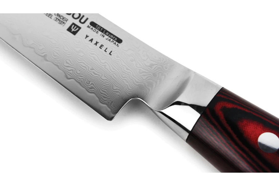 Yaxell Super Gou Japán Konyhakés 18 cm-es damaszk pengével. Ez a modell az egyik legsokoldalúbb darabja a sorozatnak. Alkalmas zöldségek, gyümölcsök hámozására és feldolgozására. Kolbászok, sajtok, kisebb húsok szeletelésére, darabolására. A Super Gou esetében a mag SG2 Micro-Carbide rozsdamentes acélból készült 63HRC szuperkeményre edzve. (speciális edzési technológiát alkalmazva. Hevítés-jéghűtés-újabb hevítés) Ezt öleli körbe két puhább (55HRC) 161 rétegű damaszk acél. Így tisztelegve a kardkovácsolás ősi művészete előtt. |