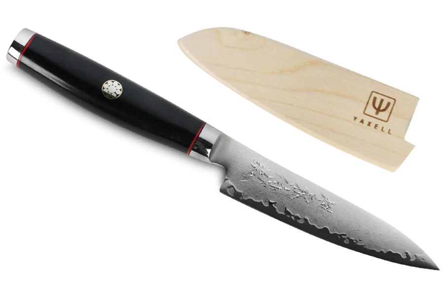 Yaxell Super Gou Ypsilon Japán Konyhakés 12 cm-es damaszk pengével. Ez a modell az egyik legsokoldalúbb darabja a sorozatnak. Alkalmas zöldségek, gyümölcsök hámozására és feldolgozására. Kolbászok, sajtok, kisebb húsok szeletelésére, darabolására. A Super Gou Ypsilon esetében a mag SG2 Micro-Carbide rozsdamentes acélból készült 63HRC szuperkeményre edzve. (speciális edzési technológiát alkalmazva. Hevítés-jéghűtés-újabb hevítés) Ezt öleli körbe két puhább (55HRC) 193 rétegű damaszk acél. Így tisztelegve a kardkovácsolás ősi művészete előtt. Minden késnek más és más mintázata van, így minden darab teljesen egyedi. A hamon vonal megidézi nekünk az régmúlt japán agyagos edzés hagyományát. |