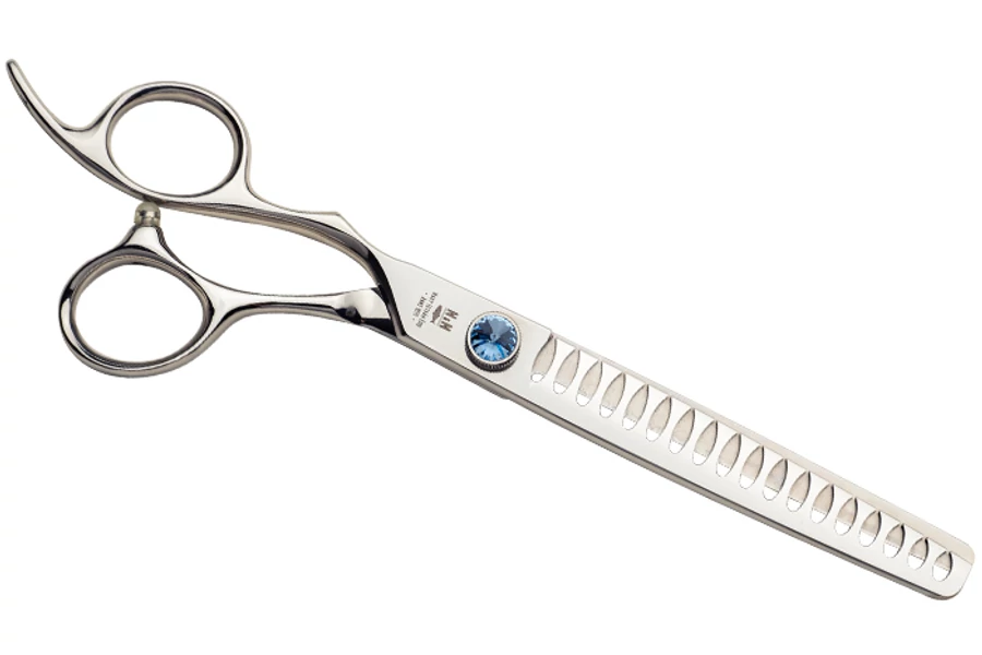 7”-os balkezes chunker olló egyenes pengével, borotvaéles konvex éllel. Golyóscsapágyas feszítőrendszer és ergonomikus kialakítás. Ideális természetes textúrák kialakításához minden szőrtípuson.