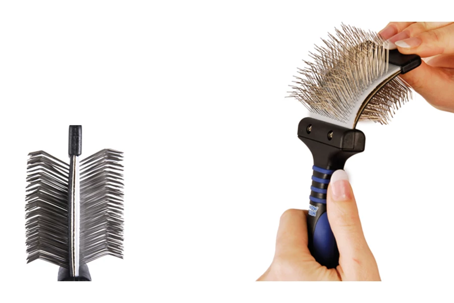 A Show Tech Twin Flexi Kefe lehetővé teszi, hogy az összecsomósodott, ápolatlan szőrzet a kutya számára elviselhetőbb, kellemesebb, tűrhetőbb módon, de még is gyorsan kikefélhető legyen.