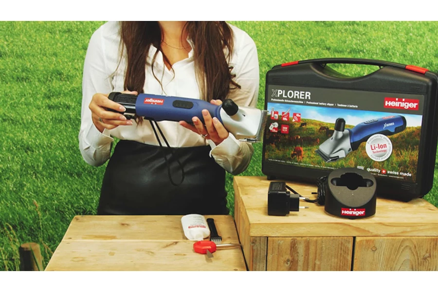 A nagy teljesítményű Heiniger XPLORER akkumulátoros nyírógép lehetővé teszi a vezeték nélküli nyírását.