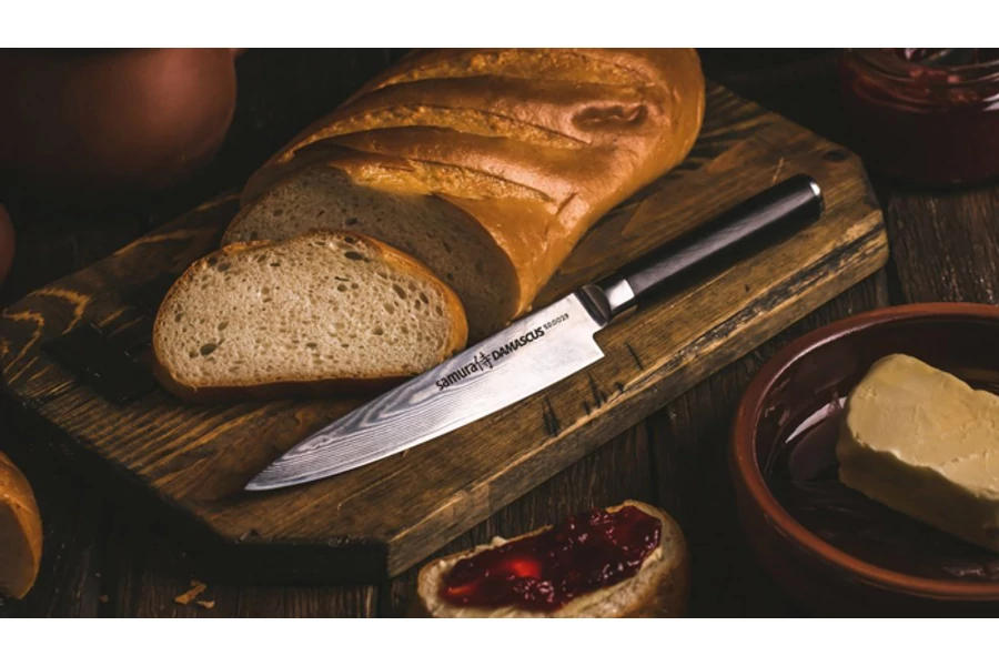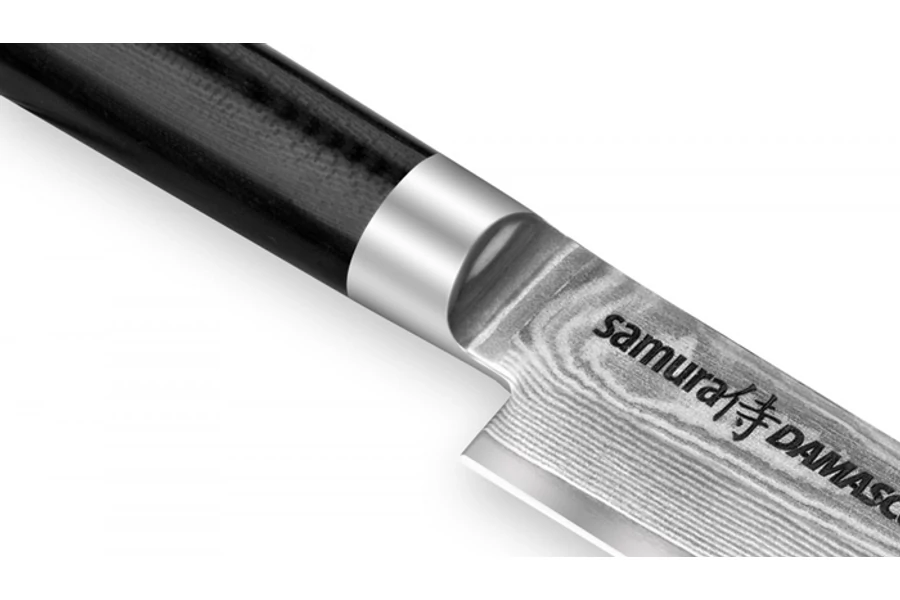 | Samura Damascus Utility Knife konyhai kés. Ez a modell az egyik legsokoldalúbb darabja a sorozatnak. Alkalmas zöldségek, gyümölcsök hámozására és feldolgozására. Kolbászok, sajtok, kisebb húsok szeletelésére, darabolására. | |