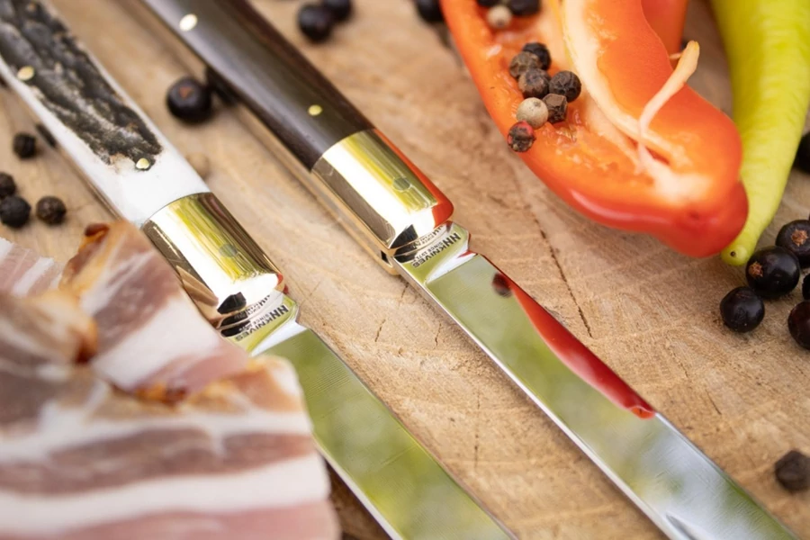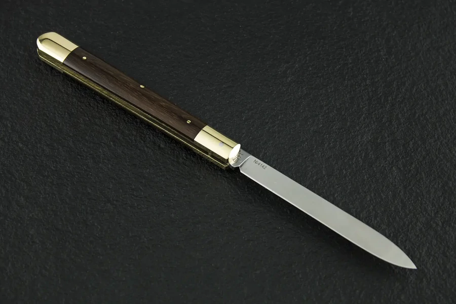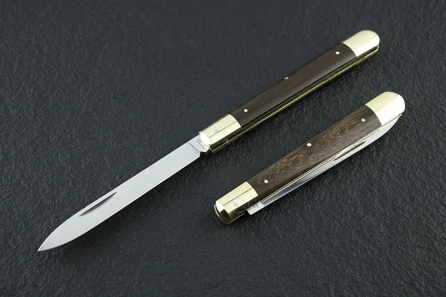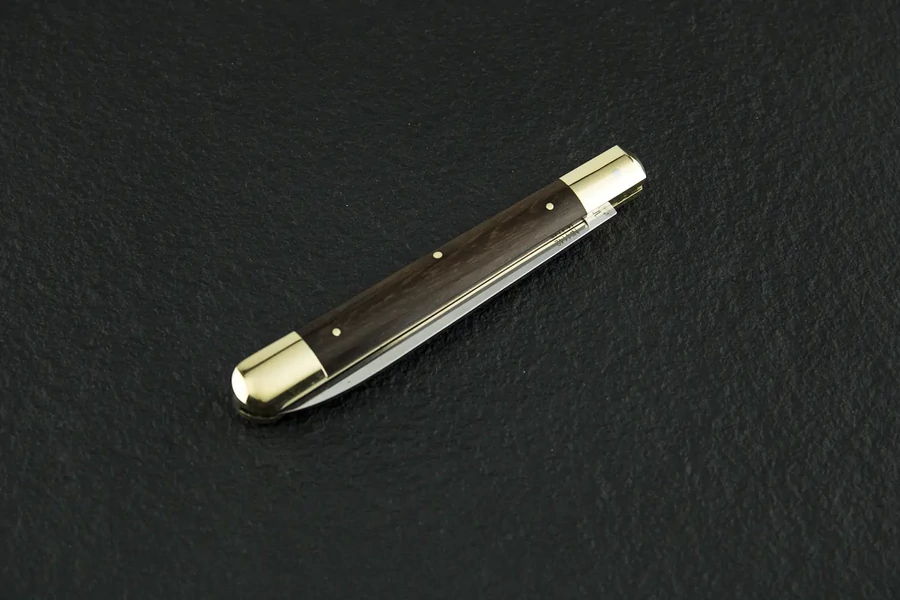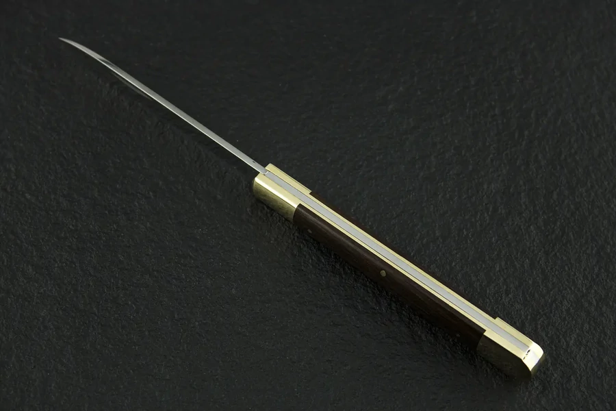 A szalonnázó bicska a késkedvelők körében az egyik legnépszerűbb forma. Keskeny, vékony, egyenes pengéje, kecses markolata igazi úri bicskává avatja. Pengekialakítása miatt elsősorban étkezési zsebkésként használták, de nem okoz vele gondot egy nyárs megfaragása sem. A közkedvelt forma már az 1800-as évek eleje óta ismert. Szinte nincs olyan késkészítő, akinek a termékei között ne szerepelne. Kedvelt reprezentációs ajándék, hazai és külföldi diplomaták, államfők és üzletemberek körében. Vékony, rendkívül finom, kecses formájának köszönhetően, nem túl nehéz, még egy öltönyzsebben is elegánsan megfér. Így aztán éttermekben, vendéglőkben is gyakran előkerül az asztalnál, gyakran nem kicsi feltűnést keltve. |