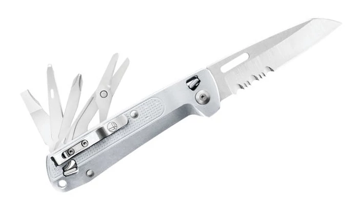 A Leatherman FREE K4X az egyedülálló mágneses technológiával rendelkező széria zsebkés alapú modellje. Ideális azoknak az embereknek, akiknek a stabil alapfunkciók kellenek a mindennapokra, de a lehető legkönnyebben tárolható formában. 420HC félszerát élű kés, miniatűr csavarhúzó, közepes csavarhúzó, csillag csavarhúzó, csomagbontó, ár (lyukasztó), mini feszítő, rugós olló, üvegnyitó funkciók egy zsebkésben. Reteszelőzáras pengék. Kiváló prémiumeszköz a mindennapokra. Teljesen egykezes használat. Egyedül állóan kompakt kivitel. A gyártó a termékre 25 év garanciát vállal.