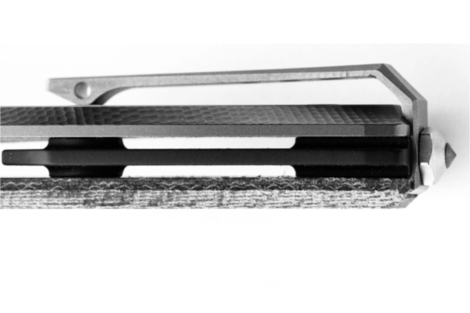 A markolat anyaga tömör 6Al4V titán és micarta. Könnyű és rendkívül tartós. Textúrázása stabil fogást biztosít használat közben. A biztonságról framelock (keretzár) gondoskodik. A markolat végén egy taktikai üvegtörő is helyet kapott.
