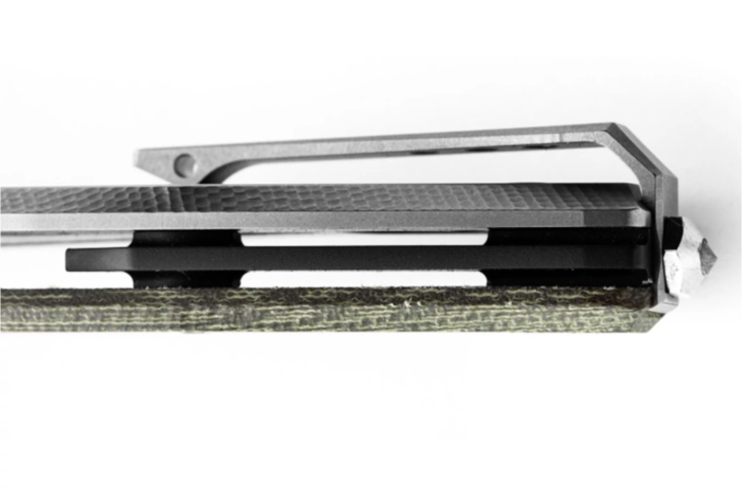 A markolat anyaga tömör 6Al4V titán és micarta. Könnyű és rendkívül tartós. Textúrázása stabil fogást biztosít használat közben. A biztonságról framelock (keretzár) gondoskodik. A markolat végén egy taktikai üvegtörő is helyet kapott.