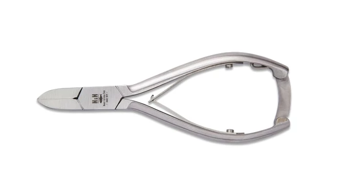 Rozsdamentes körömcsípő 14 cm-es, laprugóval. Egyenes pengével.