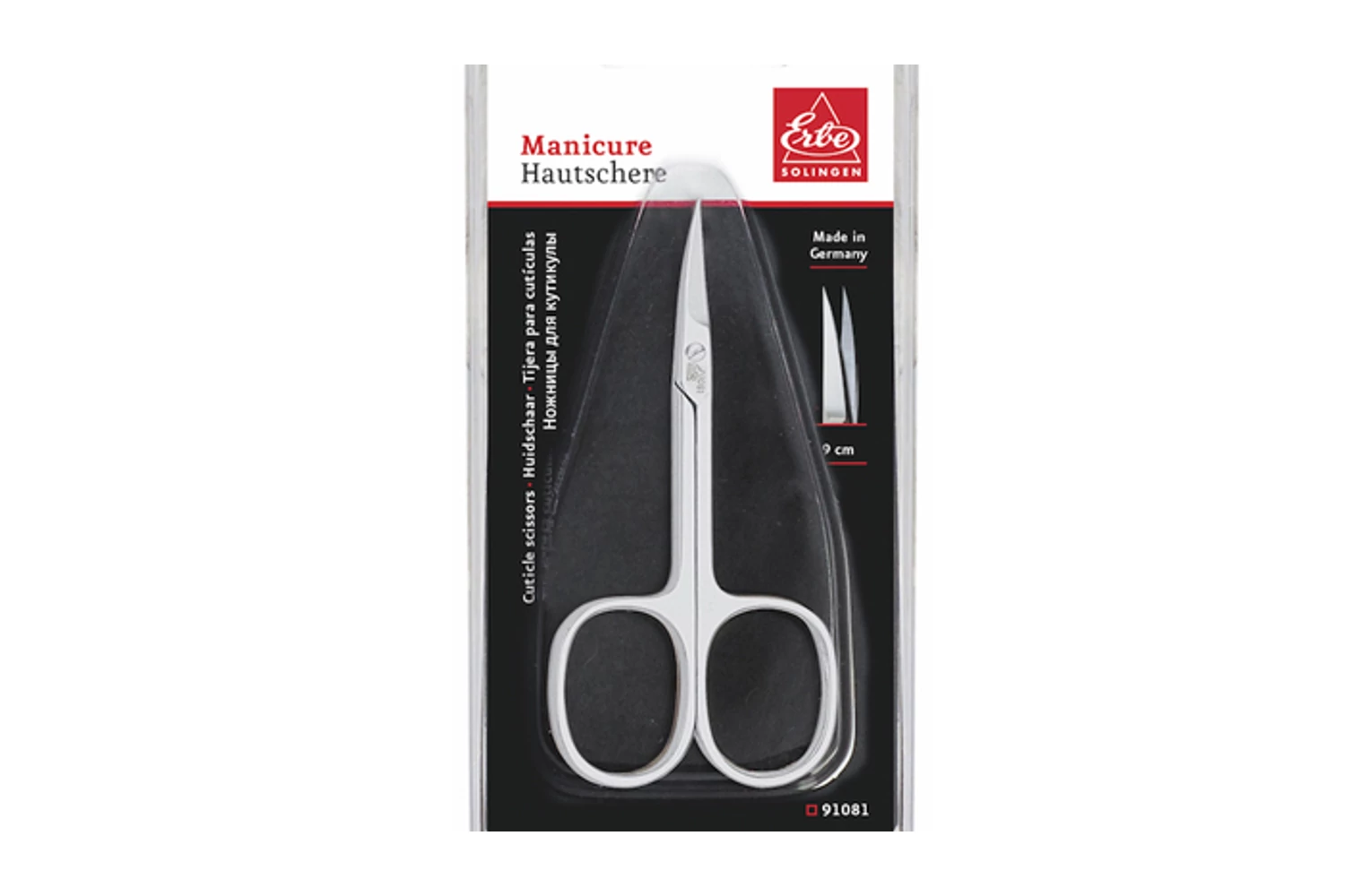 Az Erbe Solingen Manicure bőrvágó olló segítségével. Precíz, hibátlan manikűrt készíthet. Minőségi kialakításának köszönhetően sokáig a manikűr készlete része lesz, és biztonságosan használhatja. Professzionális olló, amely tökéletesen ápolt, és gyönyörű megjelenésű körmöket biztosít önnek. Alkalmas manikűr-pedikűr szalonokba, de akár otthonra is. Minden gyártási folyamat során a termékeket többször tesztelik és ellenőrzik, így egyetlen termék sem hagyhatja el a gyárat, amelyek nem felelnek meg a legmagasabb elvárásoknak.