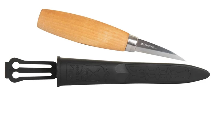 A Morakniv Woodcarving 122 egy páratlan faragókés. A penge rendkívül keskeny és hegyes. Kialakítása miatt kifejezetten a bevágásokhoz, bemetszésekhez javasoljuk. Anyaga laminált szénacél, így a közepe kellően edzett és kemény a fafaragó munkák elvégzéséhez, de puhább oldalsó acélrétegek megadják a kellő rugalmasságot a precíziós feladatokhoz. A kis méret miatt a legfinomabb részleteket is meg tudja faragni. A markolattüske az egész markolaton áthalad, növelve a kés terhelhetőségét. A klasszikus nyél forma kényelmes és stabil fogást biztosít használat közben. Az olajozott nyírfa fokozza az autentikus hatást.