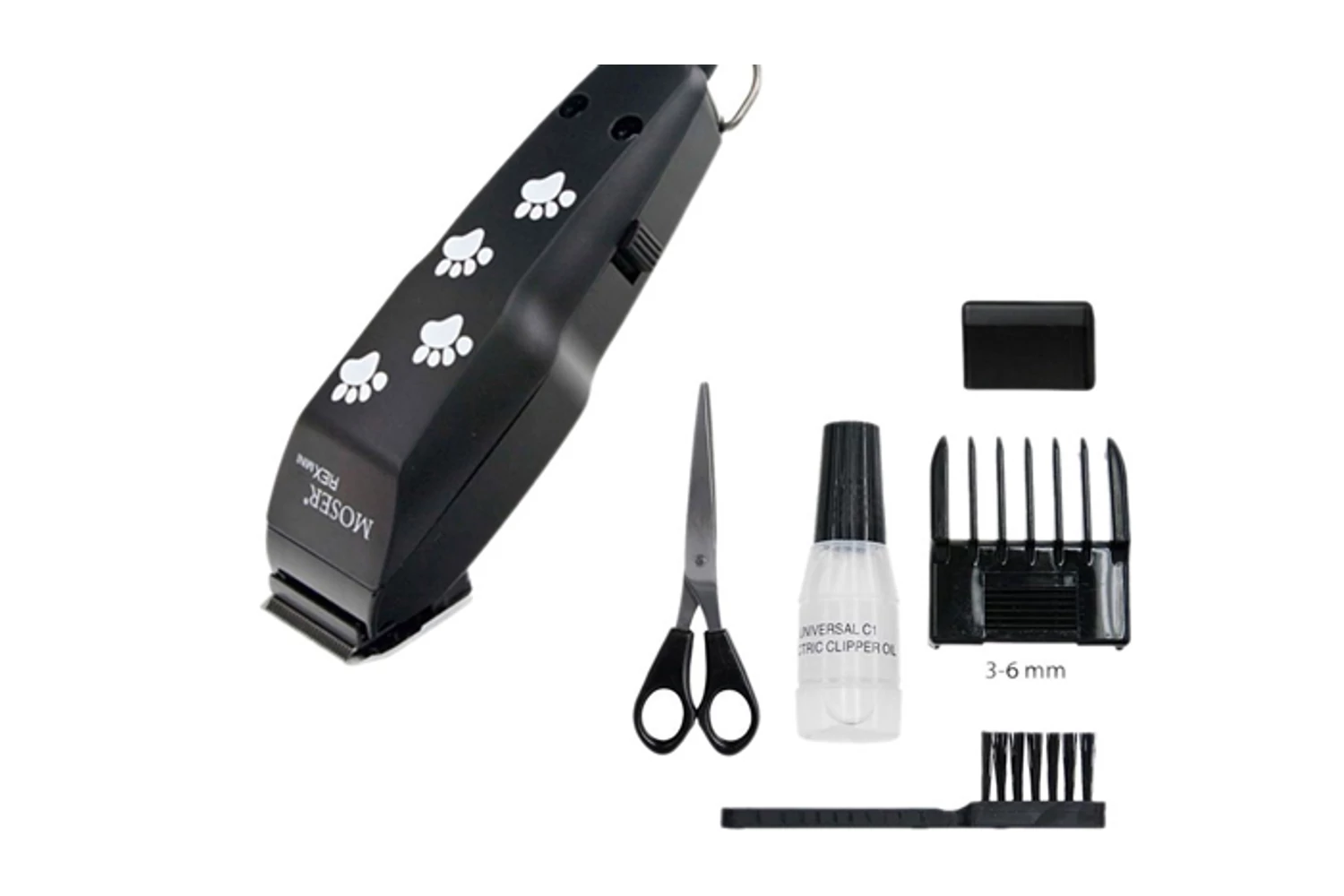 Moser 5 W-os nyírógép, fej, fülek, hajlatok, tappancsok szőrzetének nyírására. Professzionális és nagyon halk borotva kifejezetten az érzékeny fülű kutyáknak. Keskenyebb nyírófejjel (32mm) rendelkezik, mint a nagyobb nyírók, ezáltal a problémásabb helyeken sokkal könnyebben, praktikusabban használhatő a gép, könnyebb és egyszerűbb a nyírás, fazonírozás.
