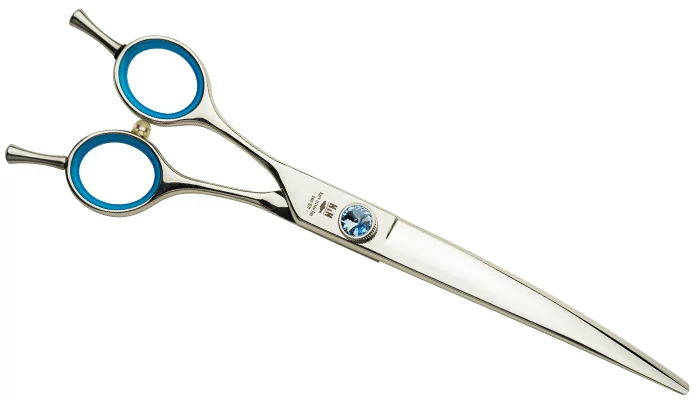 A penge konvex éllel rendelkezik, így borotvaéles és finoman vág, nem tolja el a szőrt. A kényelmes, ergonomikus szárkialakítás, az ujjtámasz és az állítható csavaros feszítőrendszer biztosítja, hogy az olló mindig az adott munkához igazítható legyen, és hosszú távon is kézbarát maradjon.