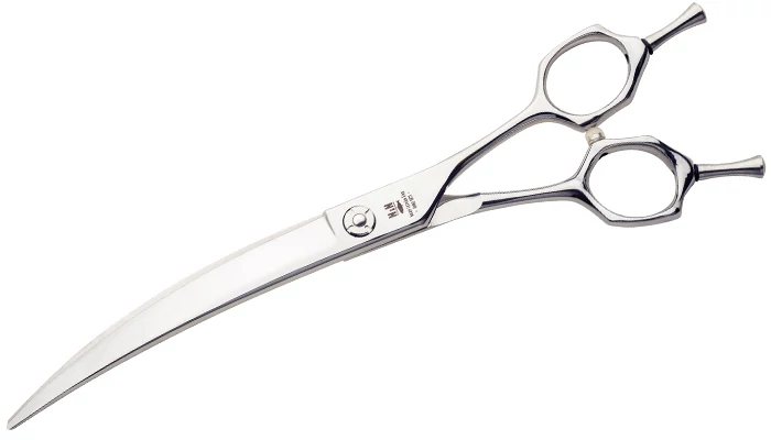 A NN-Knives 7,5” extra hajlított kutyakozmetikai olló kifejezetten az ívelt formák precíz kialakítására készült – különösen ajánlott az arcorri rész és a bóbita formázásához. A rendkívül hajlított penge lehetővé teszi, hogy egyetlen vágással természetes, lekerekített formát hozzunk létre.