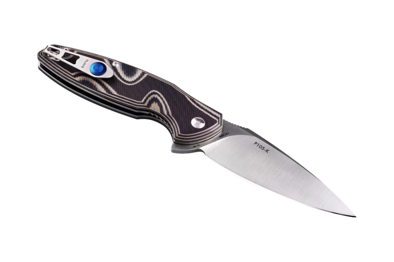 Ruike Fang P105 zárókés egy széles pengéjű zsebkés. A markolat G10 anyagból készült, csúszásmentes kivitelben. A kés Liner Lock funkcióval van ellátva a nem kívánt záródás megakadályozására. A kés egy kapoccsal van felszerelve a zsebben való rögzítéshez, és ideális a mindennapi viseléshez (EDC kategória).
