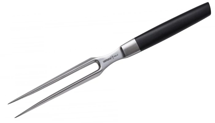 A Samura MO-V sorozata a legegyszerűbb megoldásokból és legegyszerűbb alapanyagokból hozta ki a legnagyszerűbb konyhakéseket. Iskolapéldája a „kevesebb néha több” esetnek. Az egyrétegű acél egyik tulajdonsága sem kimagasló, viszont nincsen kifejezett hátránya sem. Jó éltartás, kellő keménység, könnyű karbantartás és rozsdamentesség. Pont, amire egy konyhának és szakácsának szüksége van. A jellegzetes hengeres markolatok, a markolattüskés kivitel, az impregnált baknik mind hűen hozzák az utánozhatatlan japán stílust. A G10 anyag tökéletesen ellenáll a vegyszereknek és a nedvességnek, nem mérgező és stabil fogást nyújt. Ráadásul az MO-V sorozat darabjai meglehetősen könnyűek is, így sütés-főzés még élvezetesebb velük.