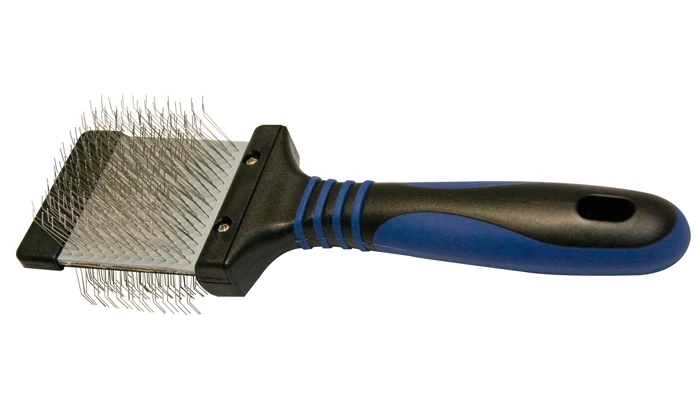 Az ergonómikusan kialakított, kényelmes nyélre rugalmas, hajlékony anyagból rögzített felületnek mind a két oldalán megtalálhatóak a hajlított tüskék. Az egyik oldalon Puhább, a másikon Keményebb a kialakítás, ez álltal jól hozzá lehet igazítani az adott bundázathoz, szőrtipushoz. Így olyan mint, ha két szerszám állna a rendelkezésre a sokszor fárasztó és a kutya részére kellemetlen munkafolyamathoz.