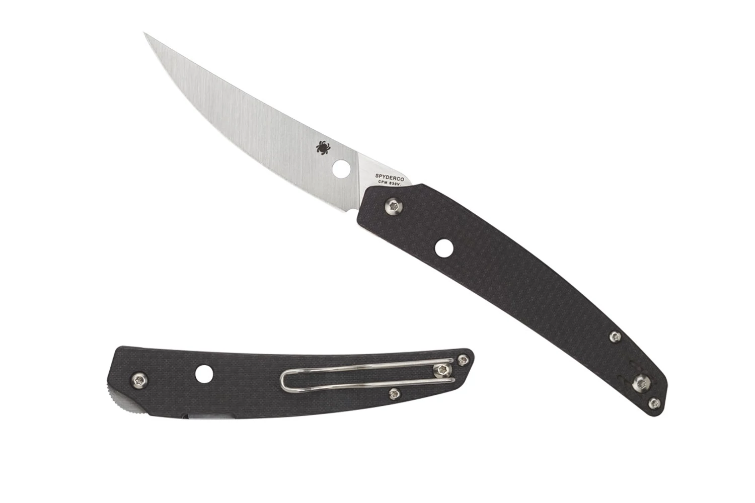 Az élen elhelyezett kis kiugró felületet az ujjal érintve könnyen kinyithatjuk, mivel a speciális Spyderco Compression Lock™ zármechanizmussal biztosan rögzül a nyitott állapotba. A CPMS30V® rozsdamentes acélból készült, sátánozott penge végig éles, és sebészeti típusú hegyével pontos vágást biztosít.
