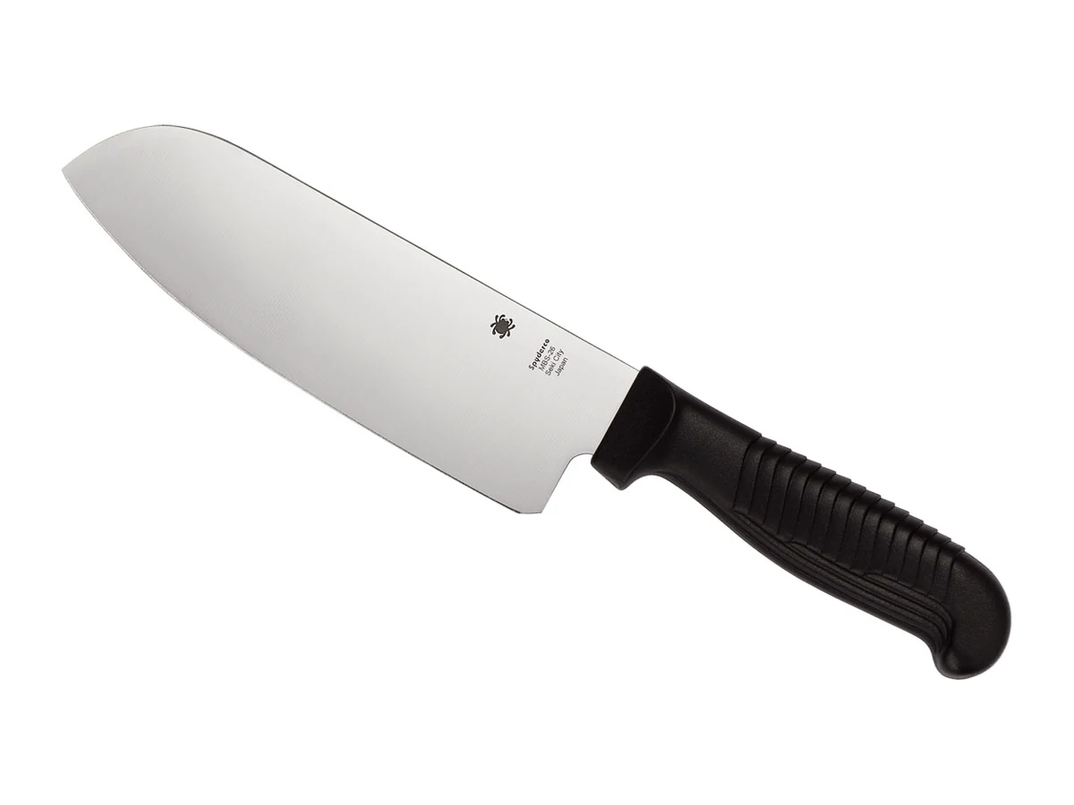 A Spyderco KITCHEN CLASSICS Santoku szakácskés kiváló minőségű MBS-26 rozsdamentes acélból készült. A penge rendkívül vékony, és gondosan meg van kezelve hőkezelés alatt, így optimális élmegőrzést biztosít. A kés fogantyúja fekete polipropilénből készült, amely ellenálló műanyag, közvetlenül a penge nyelébe injektálva. A "lépcsős" mintázatának köszönhetően kiemelkedő kényelmet és kontrollt nyújt használat közben.