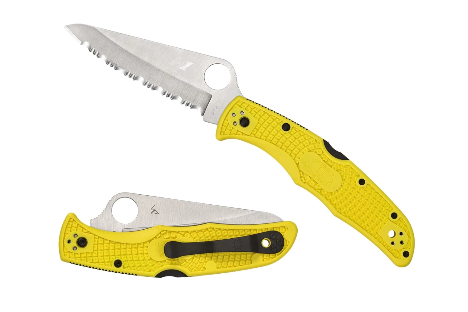 Ez a verzió élénk sárga markolattal rendelkezik, amely jól látható a vízben és környékén. Kétféle késél közül lehet választani: PlainEdge™ vagy teljesen fogazott SpyderEdge™.