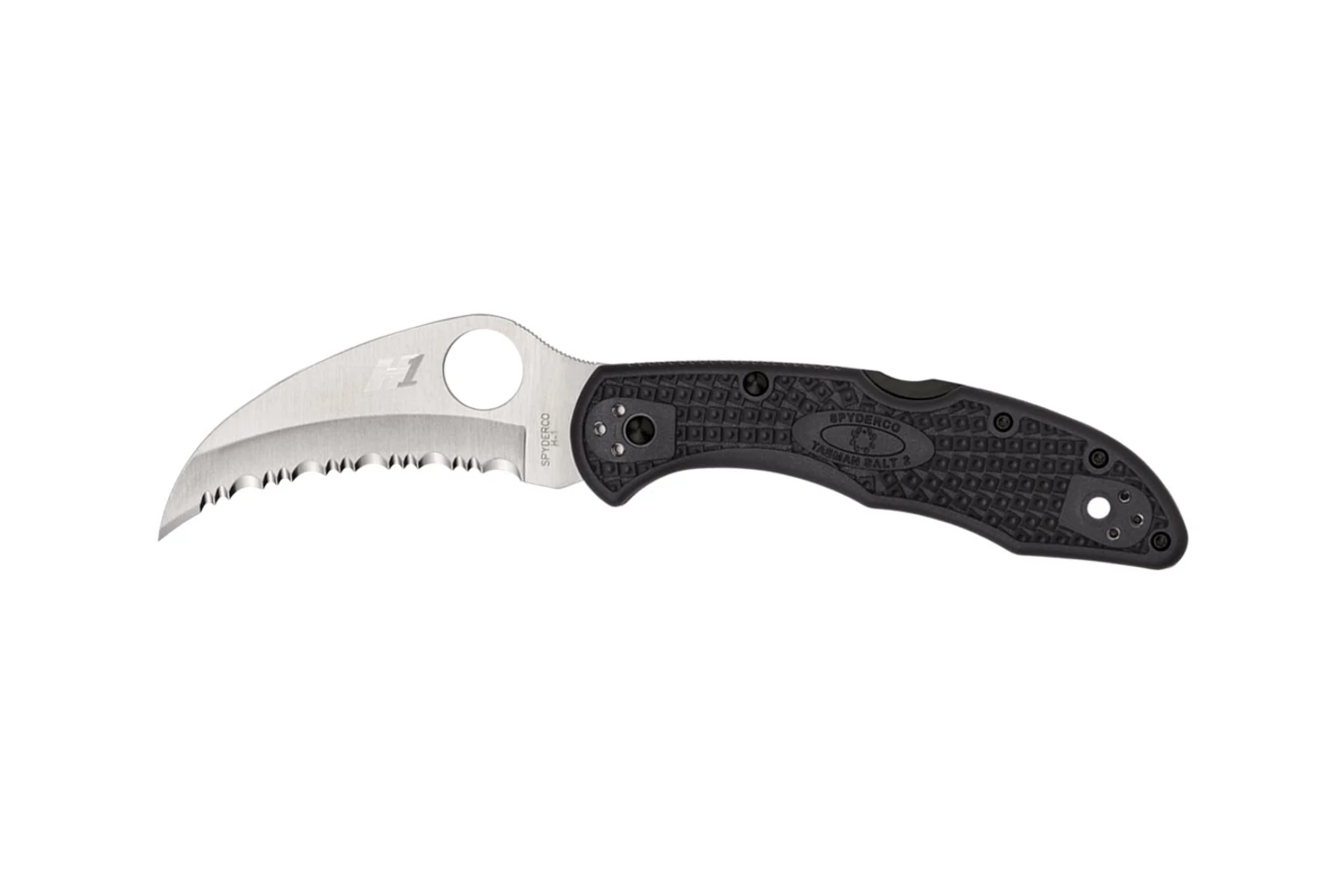 A Spyderco Tasman Salt 2 zsebkés, a második generációs verzió, egy erőteljes fúziója a hawkbill (békakonty) pengetipusnak, a H-1 rozsdamentes acél rendkívüli korrózióállóságával és a továbbfejlesztett injekciós formázású markolat dizájnjával. Ez az eszköz elképesztően hatékony vágószerszám, ideális azok számára, akik víz közelében dolgoznak.