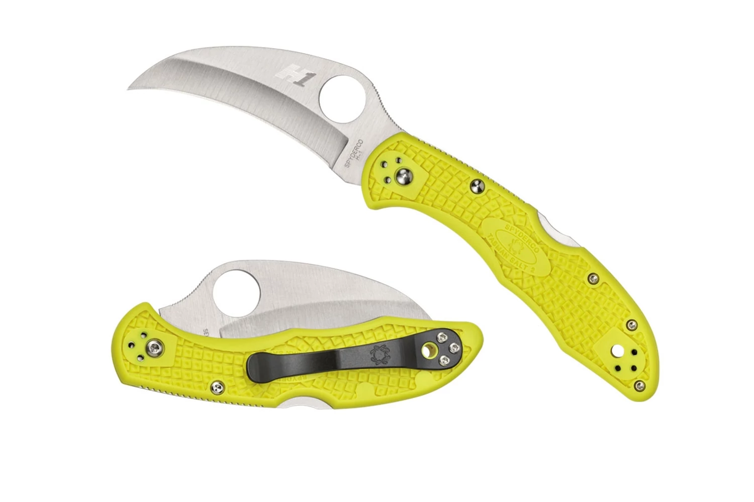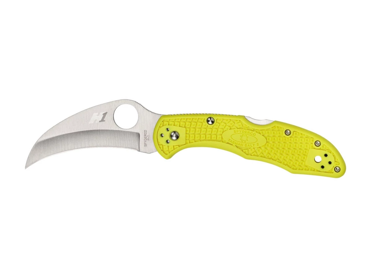A Spyderco második generációs Tasman Salt 2 zsebkés egy erőteljes ötvözete a hawkbill (becco di falco) pengeprofilnak, az ultra korrózióálló H-1 acélának és a fejlettebb injekciós kialakítású markolatnak. Ez az elképesztően képzett vágóeszköz ideális választás mindazok számára, akik víz körüli munkát végeznek.