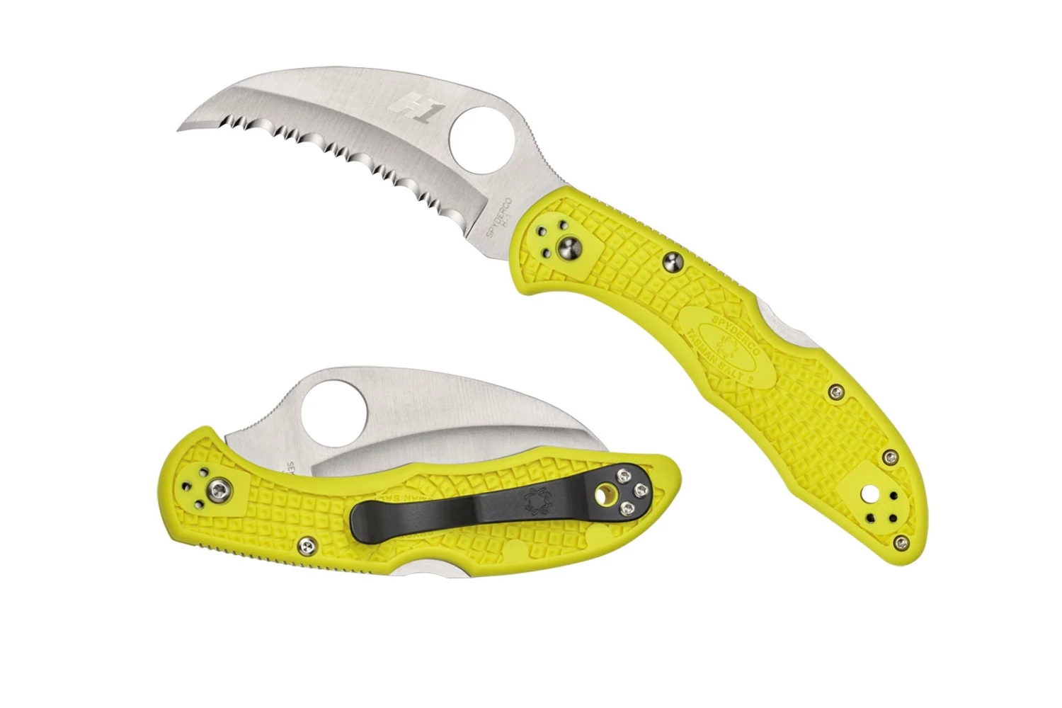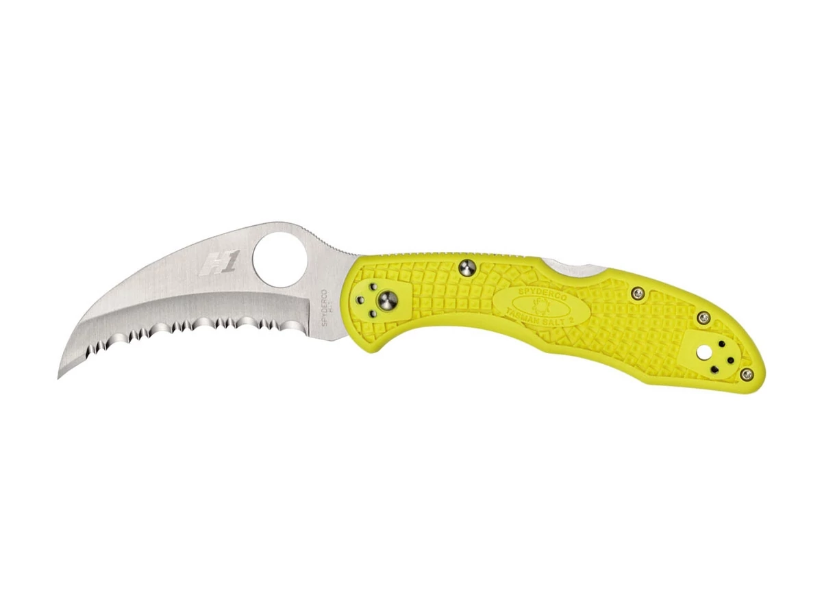 A Spyderco Tasman Salt 2 egy második generációs zsebkés, amely a hawkbill (sólyomszerű) pengeprofil, az ultra korrózióálló H-1 acél és a fejlesztett injekciós forma tervezése lenyűgöző ötvözete. Ez az eszköz ideális olyanok számára, akik víz közelében dolgoznak. Kapható sima vagy teljesen fogazott vágóélekkel, a Tasman 2 ívelt pengéje "megragadja" a vágott anyagot, és a konkáv él felé irányítja azt, hasonlóan egy állati karomhoz. Ez a dinamika rendkívüli vágásteljesítményt eredményez, különösen szálas és nehezen vágható anyagok, mint például hálók, zsinórok, hevederek és kötelek esetén.
