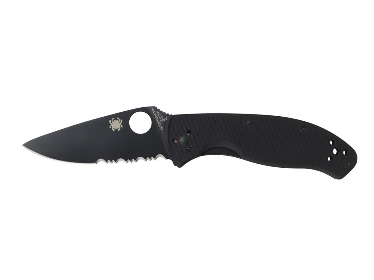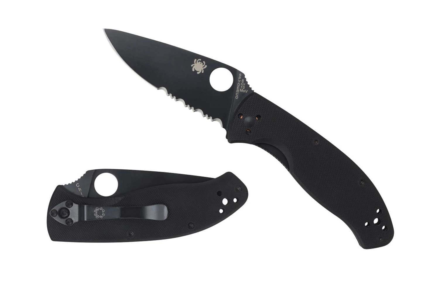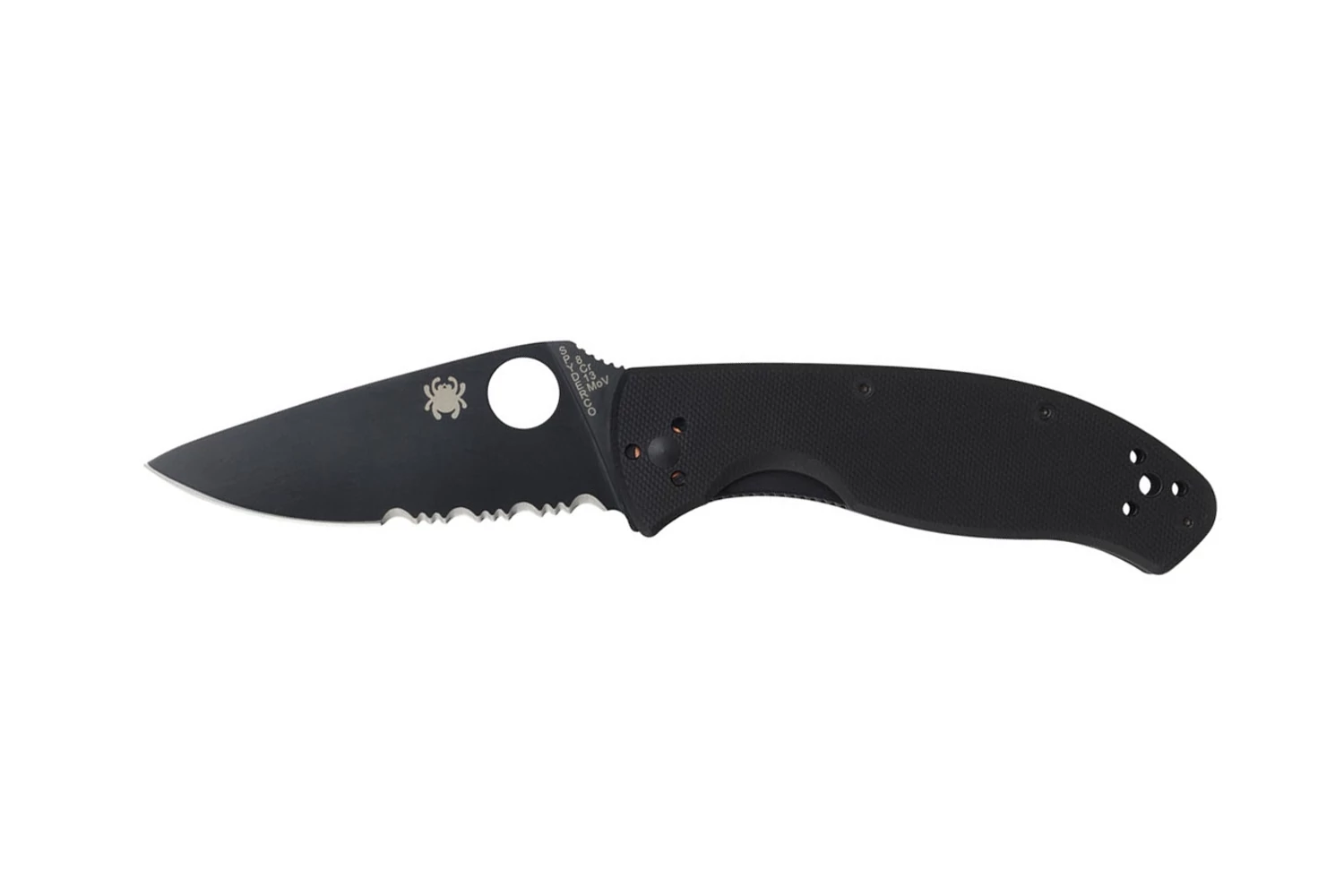 A Spyderco Tenacious zsebkés G-10 fekete markolattal és ergonomikus kialakítással rendelkezik. A hosszú, lapos penge 8Cr13MoV acélból készült, amely fekete, nem tükröződő bevonattal van ellátva. A markolat belsejében lévő perforált acéllemezek növelik a rigiditást és a tartósságot.