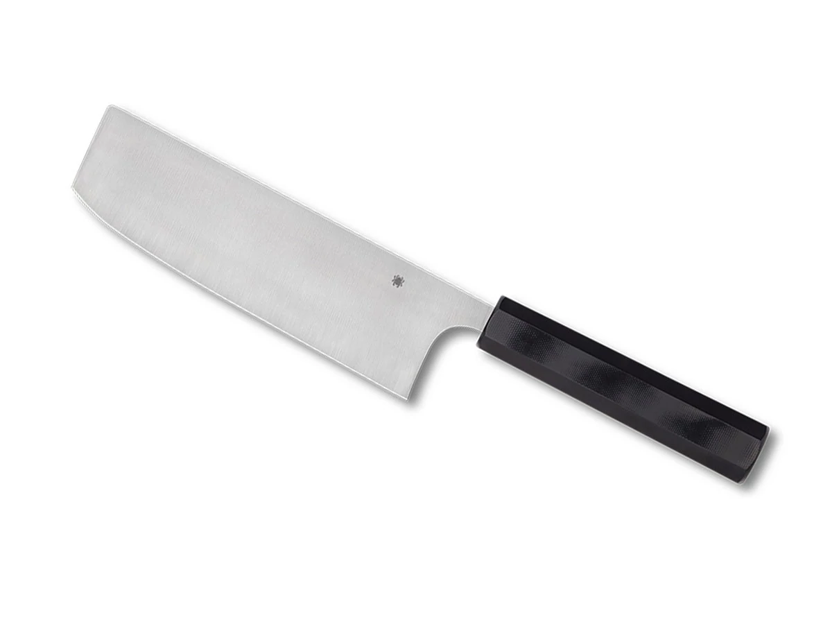 A Spyderco WAKIITA NAKIRI 7.29" CM.18,5 BLACK G-10 K17GP szakácskés a "tagliaverdure" műfaj klasszikus példája, melynek exkluzív téglalap alakú formája és enyhén megemelt éle ideálissá teszi mindenféle zöldség precíz vágásához. A kés pengéje éles marad hosszú évek használata után is, köszönhetően a speciális formájának.