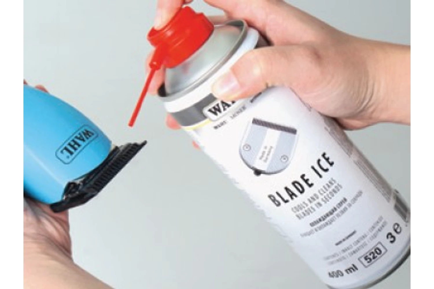 Többfunkciós Wahl Blade Ice 4in1 Spray a vágófejekhez. Közvetlen fejhűtéshez, tisztításhoz, olajozáshoz és egyidejűleg korrózióvédelemhez. Minden nyírógéphez, ollóhoz, valamint karomvágó eszközhöz ajánlott. Nagy mértékben megnöveli a szerszámok élettartamat a felületek kopását.