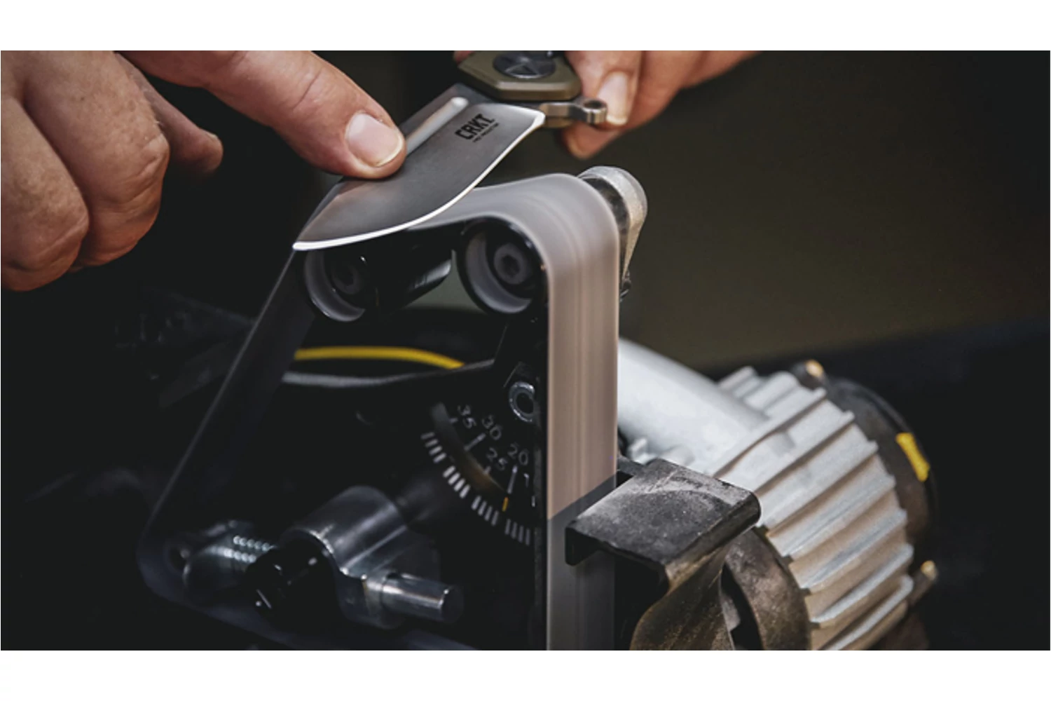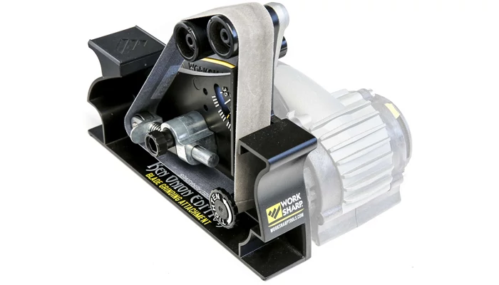 A Worksharp Ken Onion rendszerhez használható késkészítő kiegészítőt (Blade Grinding Attachment) a penge formázására, élezésére és fenésére tervezték. Anyaga erős fémöntvény és fejlett polimer, így a komoly igénybevételt jelentő használatot is kibírja. Könnyen, szerszámok használata nélkül felszerelhető a Worksharp Ken Onion rendszerre a szalagok szintén kézzel cserélhetőek. A kiegészítő 1x18 hüvelykes szalagokat használ, különböző finomságokkal egy négy görgős, 10-35 fokba fokonként állítható rendszerben. A szalagsebesség 1200 és 2800 négyzetláb/perc között állítható a különböző igényeknek megfelelően. A két felső görgő helyzete állítható, így a rendszer hagyományos konvex és szinte teljesen lapos konvex él kialakítására egyaránt alkalmas igénytől függően. A kiegészítő kialakítása nagyban hasonlít a profi késkészítők által használt rendszerekhez, így kiemelkedő élminőség elérésére alkalmas, töredék áron.